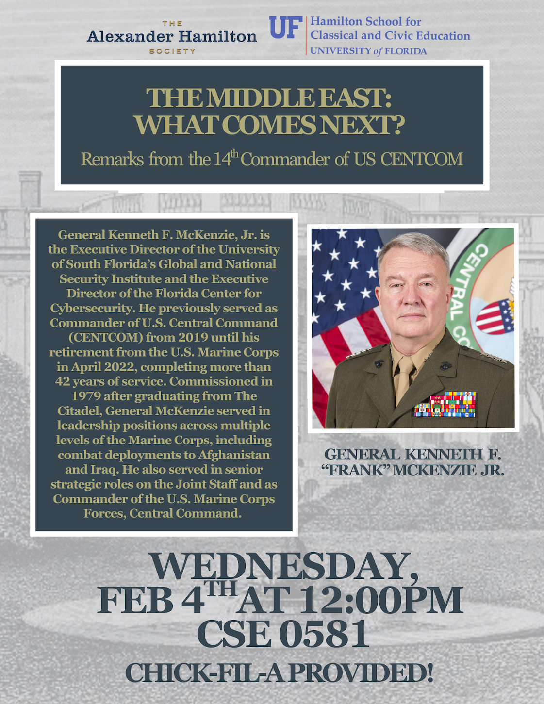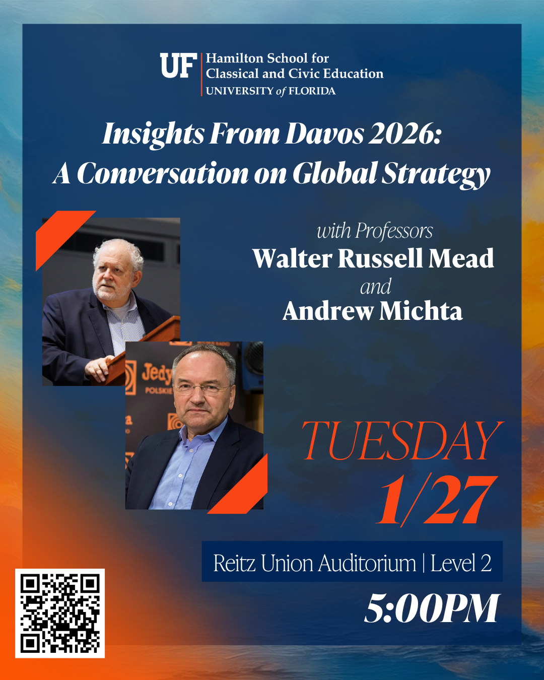 On Monday, September 23rd, please join the Hamilton School for Classical and Civic Education, the Bob Graham Center for Public Service, and the University of Florida’s chapter of t…